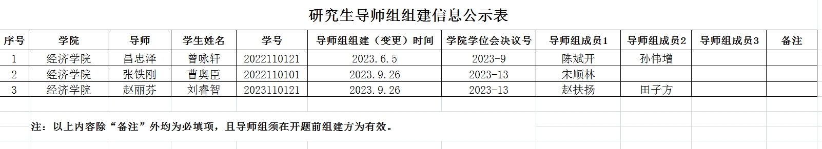 二、研究生导师组原则上应在该生学位论文开题前组建,组建后不得随意变更。学院导师组详细名单和具体信息附后,以供相互监督。研究生导师组的日常管理由研究生导师和培养单位共同负责,研究生导师作为研究生培养第一责任人的职责不变。