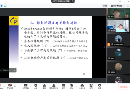 2022年5月26日下午19:00,国家统计局核算司副司长陈杰应德赢官网Vwin樊茂清教授邀请,开展主题为“迈向2025年SNA—关于2008年SNA修订进展情况介绍”的讲座,本次讲座通过腾讯会议平台线上举行,陈杰老师受到了老师和同学们的热烈欢迎!德赢官网Vwin樊茂清教授主持了本次线上学术交流会。