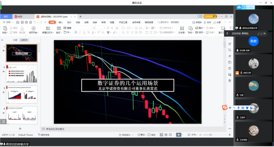 2022年5月16日上午10点,北京华诺投资管理有限公司董事长黄常忠应邀加入德赢官网Vwin德赢官网Vwin“数字金融理论与实务”线上课堂,以“数字证券的几个应用场景”为题,为同学们带来了一场精彩纷呈的讲座。