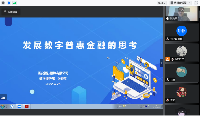 2022年4月25日上午10点,西安银行股份有限公司数字银行部总经理张晓军应邀加入德赢官网Vwin德赢官网Vwin“数字金融理论与实务”线上课堂,以“发展数字普惠金融的思考”为题,为同学们带来了一场精彩纷呈的讲座。