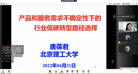 2022年4月21日下午14:00,北京理工大学经管学院副院长、教授、博士生导师唐葆君应德赢官网Vwin邀请,开展主题为“产品和服务需求不确定性下的行业低碳转型路径选择”的讲座,本次讲座通过腾讯会议平台线上举行,唐葆君老师受到了老师和同学们的热烈欢迎!德赢官网Vwin樊茂清教授主持了本次线上学术交流会。