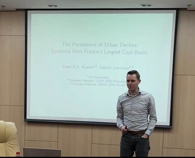 2024年4月4日上午,阿姆斯特丹自由大学的Hans Koster教授应邀开展了主题为“The Persistence of Urban Decline: Evidence from France's Largest Coal Basin”的讲座。本次讲座由德赢官网Vwin校长助理、德赢官网Vwin院长陈斌开教授主持,德赢官网Vwin德赢官网Vwin党委书记郭冬梅教授、戴宏伟教授、戴若尘副教授、吴楠助理教授,北京交通大学经济管理学院王雅璨教授等多名师生参加。