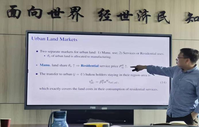 2024年5月21日,复旦大学德赢官网Vwin奚锡灿教授应德赢官网Vwin邀请,于学院11号楼308会议室开展主题为“Pro-Manufacturing Land Policies of Competing Local Governments: A Quantitative Analysis of China”的讲座。本次讲座由德赢官网Vwin德赢官网Vwin副教授赵扶扬老师主持,德赢官网Vwin党委书记郭冬梅教授、赵文哲、黄乃静、胡志安、张佳梁等老师以及德赢官网Vwin研究生参与了此次讲座。