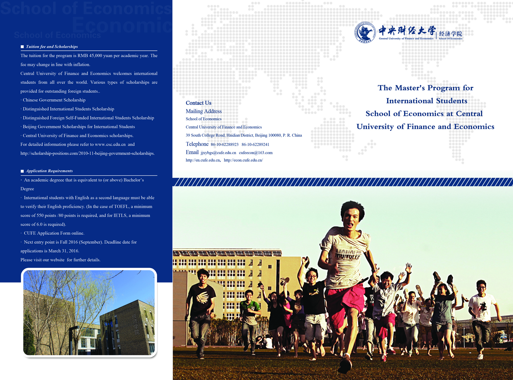 Home to a wide range of outstanding professors in all areas of economics, the School of Economics at Central University of Finance and Economics offers a unique learning opportunity. Anacclaimed faculty and international studentscreate a lively intellectual community.
