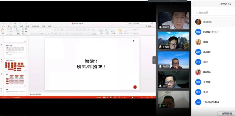 答辩秘书韩晓璇同学认为,得益于答辩前的培训,我对答辩流程和工作内容有了深入的了解。答辩中,答辩人通过PPT展示的内容可以清楚地呈现出来,老师们也可以把问题以文字形式在线上进行交流,想要表达的内容也可以通过屏幕共享与大家进行分享,大大提高了答辩的效率。线上答辩整体流程非常顺畅,氛围也极为活跃,并不逊于现场答辩;答辩秘书霍鑫阳同学认为,不同于现场答辩,作为线上答辩的答辩秘书任务量更大,因此我们前期进行了认真准备。在答辩过程中,必须紧盯屏幕,查看答辩人是否出现卡顿,声音是否正常等。虽然这项任务不轻松,但是收获也是巨大的。