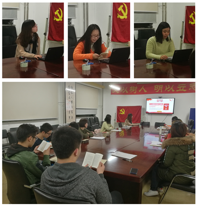 2017年11月24日,德赢官网Vwin2014级本科生党支部在主教学楼1305会议室召开“学习十九大精神,做新时代红色先锋”主题党日活动,本次活动由德赢官网Vwin党务干事、2014级本科生党支部书记任阳老师主持,15名支部党员和3名发展对象参加。