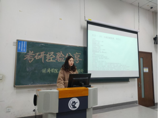 首先进行分享的是以第一名的成绩考入中财德赢官网Vwin20级国民经济学硕士生张可迎。她详细分享了英语一、数学三、政治、801综合四个科目的备考经验。她分别从书本资料选择、网课选取以及在不同阶段该如何进行科目时间分配等方面做了具体介绍。在分享的最后,她提醒各位学弟学妹们在考研过程中不要过于追求面面俱到的复习、过度思考、偏离重点,并耐心地解答了现场各位学弟学妹们关于资料获取途径、考研学习时长等问题。