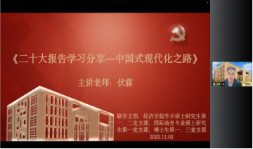 “四工程”即德赢官网Vwin“一二三四五”创优工程党建工作思路中的引航工程、牵手工程、先锋工程、特色工程四项基层党支部“对标争先”计划工程。“引航工程”充分发挥师生党员旗帜和引领作用,在学院党委的指导下,学院24个师生党支部积极开展原文研读、专题讨论、知识竞赛等多种形式的党的二十大精神学习活动,带领全体党员原汁原味学习报告原文,逐字逐句感悟报告内涵;“牵手工程”加强师生党支部联动,实现1+1>2的效果,学院教工党支部与学生党支部联合学习党的二十大报告,院党委委员、副院长伏霖为研究生党支部作主题为“二十大报告学习分享——中国式现代化之路”的专题讲座,学生党员站在青年党员角度分享学习感悟,师生党员实现良性互动;“先锋工程”促进学院样板支部和先进基层党组织等充分发挥先锋模范作用,带头认真学习热议党的二十大报告和中国共产党章程,全国首批高校“双带头人”教师党支部书记工作室——德赢官网Vwin经济史教工党支部率先开展党的二十大精神的学习研讨活动,提出经济学领域高校教师的责任担当与发展方向;“特色工程”创新基层党建工作思路,充分发挥学生朋辈教育引导作用,学院“宿舍指导员”和“学术活动项目组”两个功能型党支部发挥优势,在党员一对一联系学生宿舍以及学术活动创办中融入党的二十大精神内涵,实现将思想引领延伸到青年学生学习、生活方方面面的工作目标。