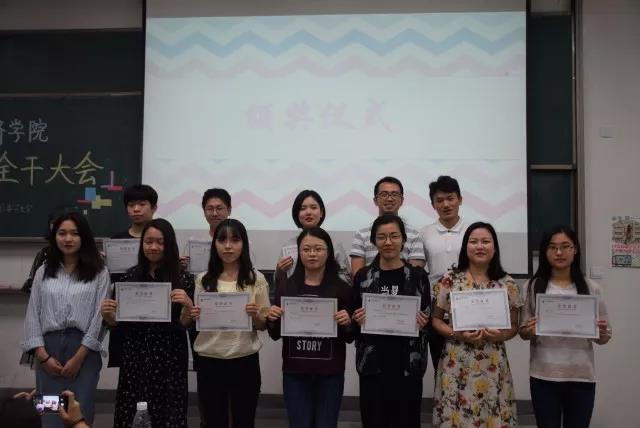 一张荣誉证书是对一年成长的肯定,是对一年辛勤的回报,也是对一年记忆的封印。所有部门完成全年工作汇报后,德赢官网Vwin团委学生会对一年中表现优异的20位优秀干事进行表彰,给予“优秀学生干部”荣誉称号。同时为表现更为突出的10位同学颁发“十佳学生干部”证书以资鼓励。今年学生会创意满满为每个部门均颁发特殊荣誉——特色部门奖项,活泼俏皮的颁奖词搭配传统样式的荣誉奖状,获奖部门代表的临时感言引发现场笑声连连、欢呼声不断。
