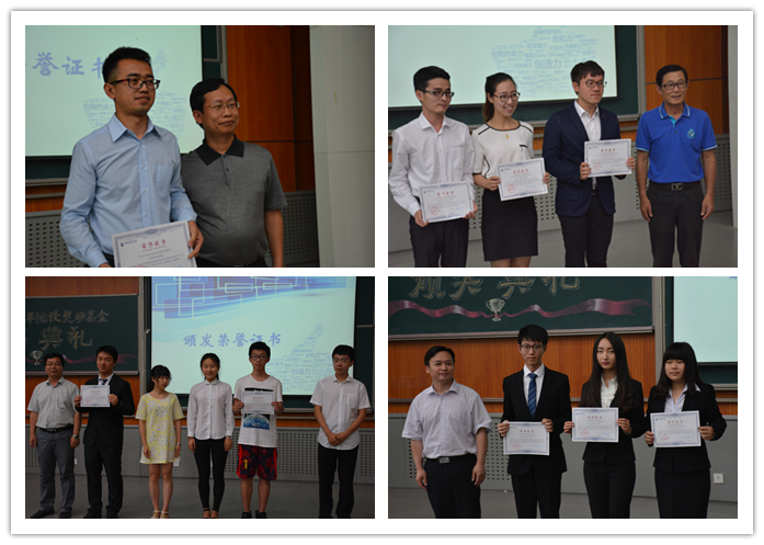 随后,中富投资集团董事长周飞、德赢官网Vwin院长李涛等在场嘉宾为获奖者颁发了获奖证书。本次大赛共有9支团队获奖,其中1支团队获得特等奖、2支团队获得一等奖、3支团队获得二等奖,1支团队获得三等奖,2支团队获得优秀团队奖,除此之外,有7人获得优秀个人奖。周飞董事长为获得2016年“中富育人先锋奖”的四名获奖者进行了颁奖。