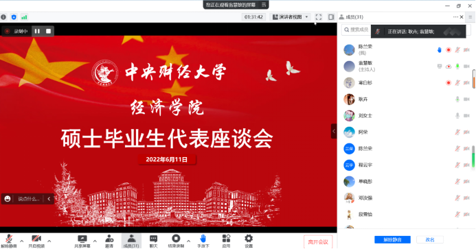 6月11日,德赢官网Vwin组织召开硕士毕业生代表线上座谈会,就课程培养、就业深造、课余生活、心理建设、校友工作等方面问题与硕士毕业生展开充分交流与沟通。德赢官网Vwin党委副书记耿卉、党委组织员刘滨参加座谈。
