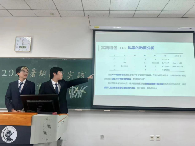 “农业实践先遣队”紧紧围绕“乡村振兴”的时代主题,以三农工作的“农业”作为调研主线,讲述十九大以来中国乡村种植业的发展变化情况。他们以山东安丘市、福建漳州市和山西运城市作为调研对象,在初步了解地方种植业的发展情况后,通过实地劳动实践和问卷走访调查等方式收集信息,总结了近年来三地种植业发展的成功经验以及不足,为地区种植业发展提供有用的建议。评委老师肯定了实践项目及其成果,同时指出实践主题应当进一步收缩,研究可以更加具体化,希望他们针对具体问题能够提出更深刻有益的建议。