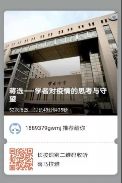 日拱一卒无有尽,功不唐捐终入海。欢迎大家来到微信课堂。时代的一粒灰,是个人头上的一座山。短短一个寒假,我们致敬逆行者钟南山,送别了抱薪人李文亮,也看到所有普通平凡的人,在疫情前线的星星点点又顽强不息的能量。而我们学生能在疫情中做什么,蒋选教授对疫情的思考在哪些方面呢?