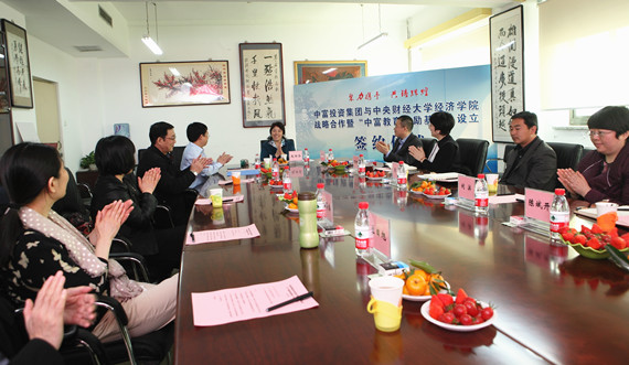 见证了双方牵手合作全过程的赵丽芬副校长在讲话中表示,看到自己昔日的学生今日事业有成,以感恩之心融智捐资助学院发展,她感到非常高兴,非常欣慰。欢迎周飞同学回到母校,感谢中富投资集团对学院发展和学校人才培养的鼎力支持。周飞校友的善举正是中财人“担当责任 勇往直前”精神的传承。一批批中财学子在校期间刻苦学习,走上工作岗位后努力拼搏,勇于担当的优秀品质为学校带来了良好的社会声誉。她指出,德赢官网Vwin从2000年经济系成立至今,经过十五年的孕育和发展,如今已驶上了快车道,在教育教学、学科建设、师资队伍和人才培养等方面取得了一定的成绩,希望学院能以此次合作为契机,一方面与中富投资集团聚力携手,优势互补,紧密合作,取得新的成绩;另一方面,充分利用合作平台,培养更多的优秀学子,能够成为引领社会向前向上发展的中流砥柱。