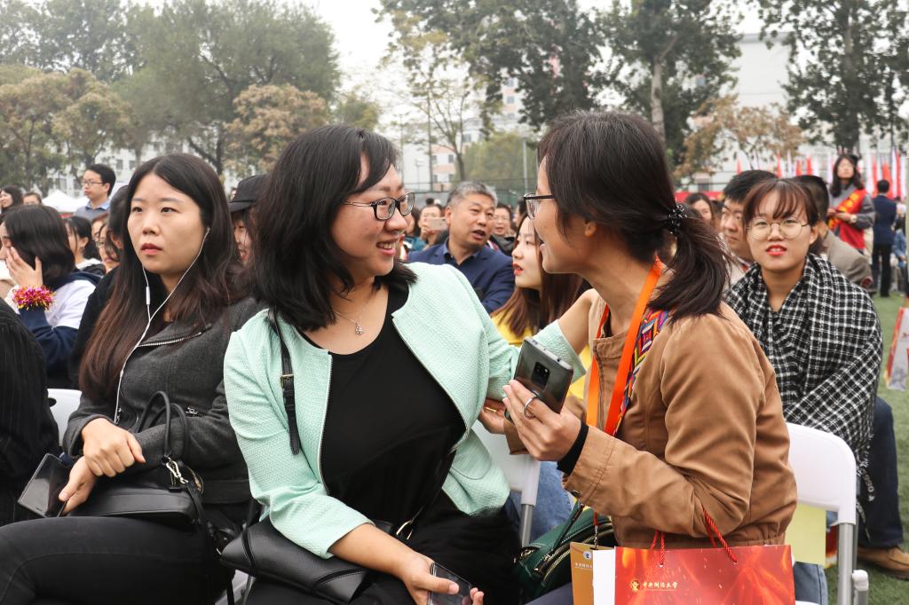 随后,部分校友师生前往学院南路校区田径运动场参加了建校七十周年纪念大会。大会分为暖场联欢和纪念大会两个部分。