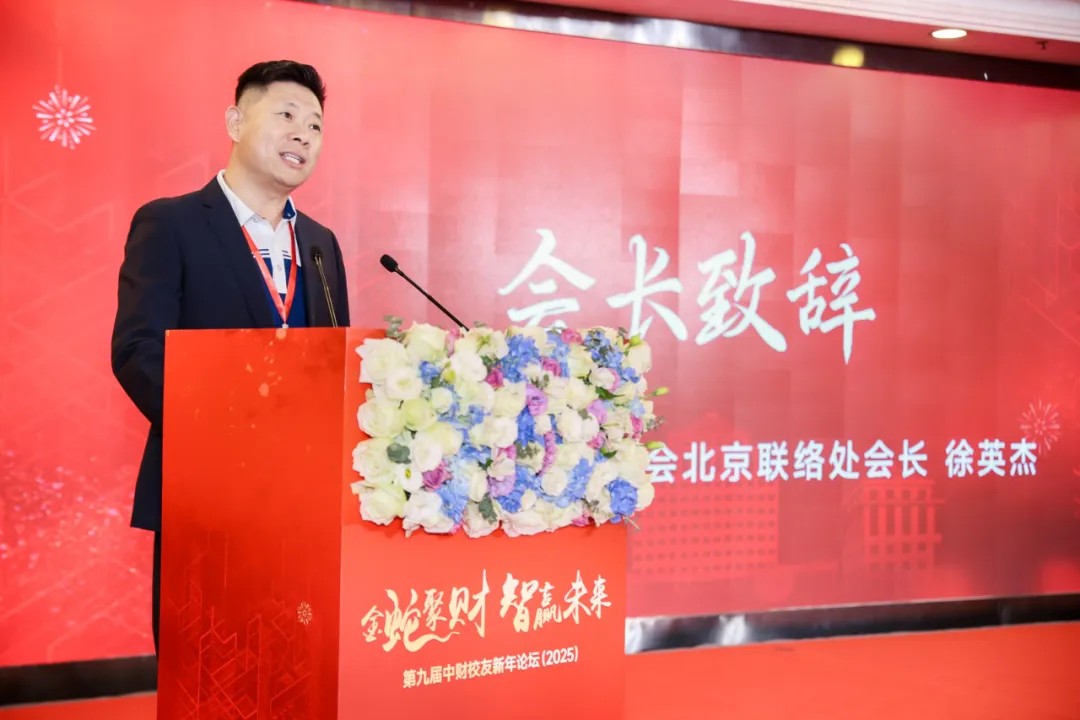 北京校友联络处会长、税务1993级校友徐英杰对母校领导及各位校友的到来表示热烈欢迎。他深情回顾了北京校友联络处举办新年论坛的历史传承,向作出突出贡献的各位前任会长致以崇高的敬意。他指出,本届论坛以“金蛇聚财 智赢未来”为主题,聚焦中美关系、人工智能、民营经济、资本市场热点话题,分享思想洞见,共话经济展望。未来五年,北京校友联络处将继续保持优良传统,在公益、学术、文体等领域内更大范围服务校友、母校和社会,发出中财大声音,展示中财大风采。