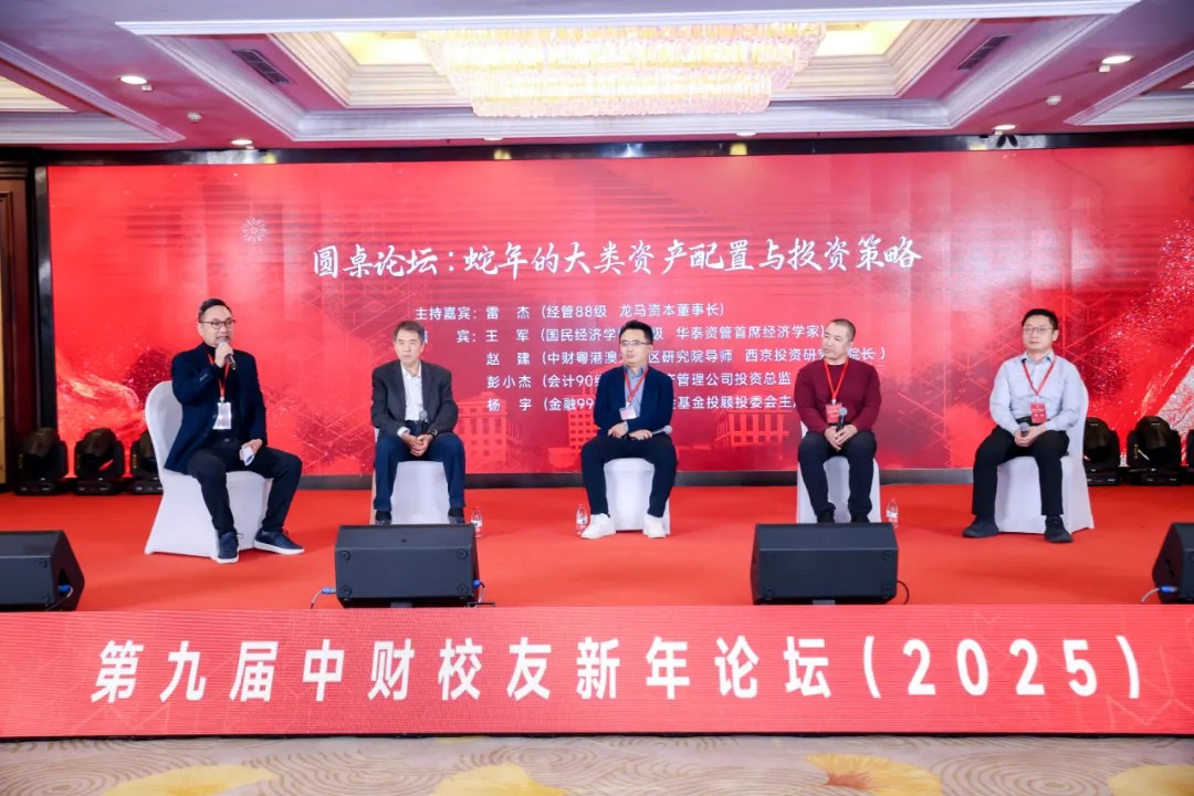 第一场圆桌论坛以“蛇年的大类资产配置与投资策略”为主题,由经管1988级校友、龙马资本董事长雷杰主持,国民经济学博2000级校友、华泰资管首席经济学家王军,我校粤港澳大湾区研究院导师、西京投资研究院院长赵建,会计1990级校友、逸海资产管理公司投资总监彭小杰,金融1999级校友、银华基金基金投顾投委会主席杨宇作为嘉宾,共同探讨2025年经济发展形势、解读宏观经济政策走向,分享各类资本市场观点,提出资产配置思路与投资策略建议,为参会校友带来了一场资本市场的“深度巡礼”。