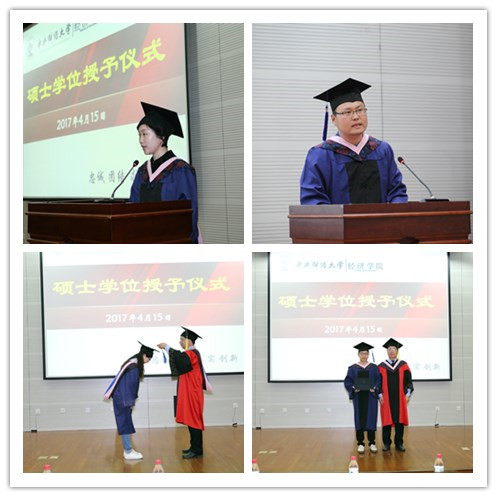 2017年4月15日上午,德赢官网Vwin2016届同等学力人员硕士学位授予仪式在学术会堂202报告厅隆重举行。仪式由院长助理顾炜宇副教授主持,出席学位授予仪式的有副院长史宇鹏副教授、教师代表高伟教授等,和2016年获得硕士学位的在职同等学力人员代表。