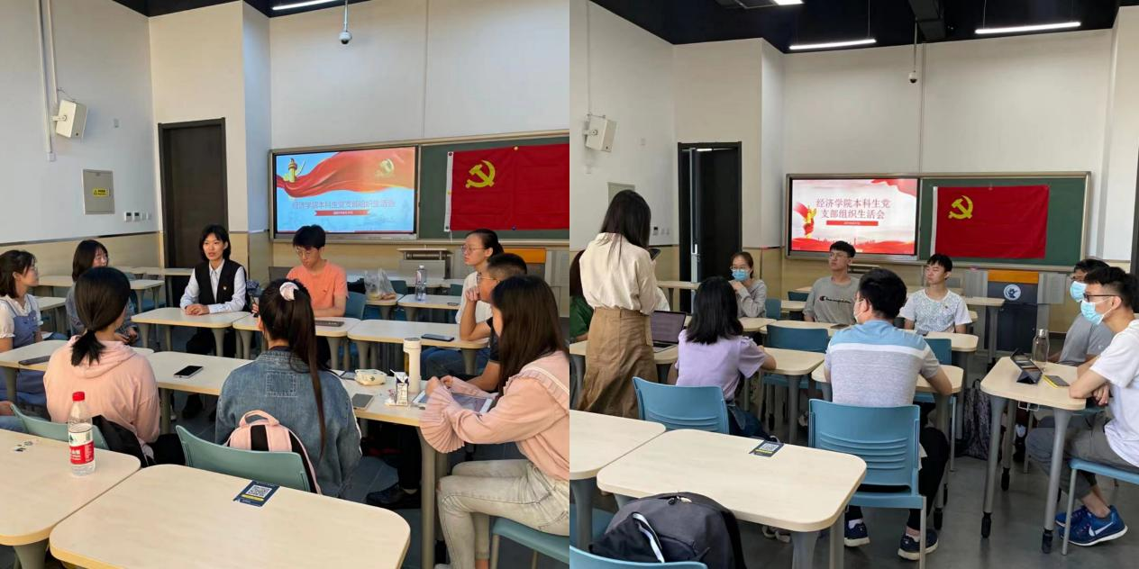 2021年9月17日上午,德赢官网Vwin本科生党支部在沙河校区11号学院楼109会议室召开党史学习教育专题组织生活会。会议由本科生党支部书记任晶老师主持,2018级、2019级45名党员及预备党员到场参会。