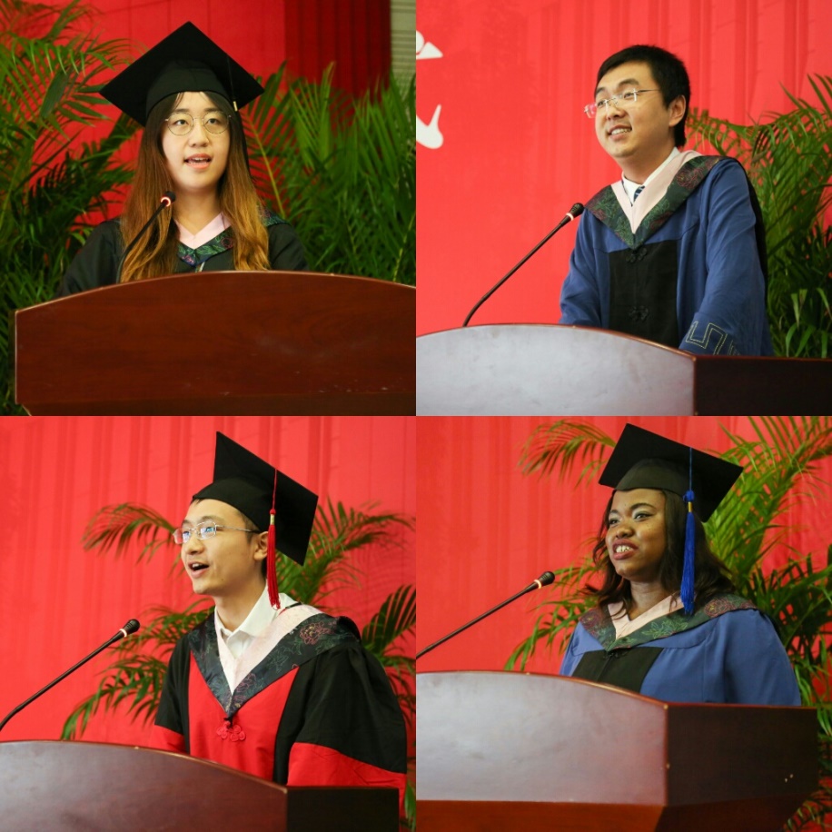 国际文化交流学院副院长王国庆教授在致辞中,首先对圆满完成学业的全体毕业生表示热烈祝贺,对德赢官网Vwin的老师们对来自各国的留学生的精心指导表达了衷心的感谢。接着他告诉同学们“生活和学习工作中,总会有不如意的事情,但希望大家能记住那些美好的东西。大家要相信,总有美好的事物在等待我们去发现。”