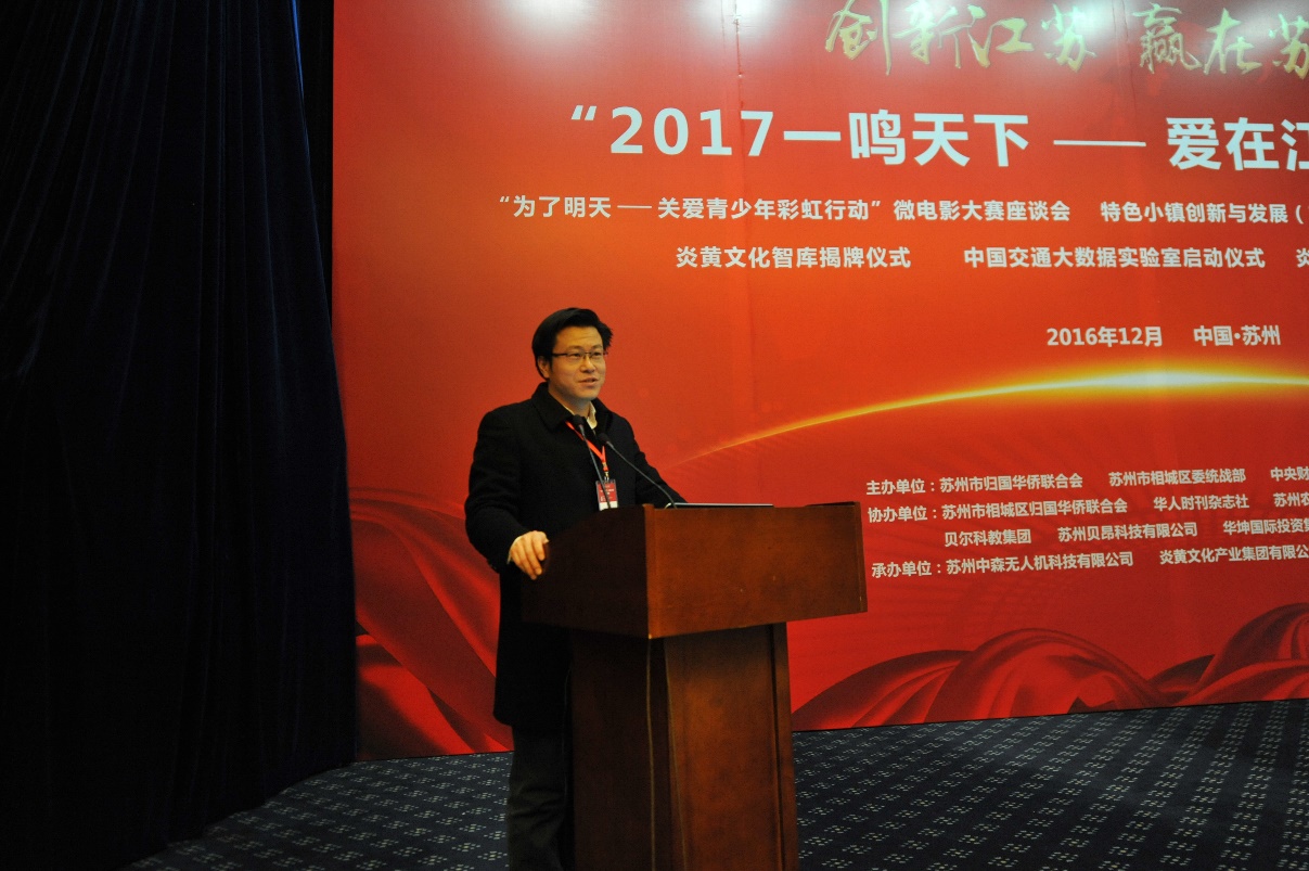 首届特色小镇创新与发展(苏州)论坛作为【创新江苏·赢在苏州“2017一鸣天下——爱在江南”】系列活动之一,于2016年12月30日在苏州举行,由苏州市归国华侨联合会联合、相城区归国华侨联合会、德赢官网Vwin德赢官网Vwin金融创新与风险管理研究中心、城市经济与区域发展研究中心共同举办,苏州市农业发展集团有限公司协办、苏州中森无人机科技有限公司承办。来自团中央、《求是》杂志社、江苏省侨联、苏州市政府、苏州市侨联有关领导,中国社科院、德赢官网Vwin、南京农业大学等的专家学者,碧水源科技等多家知名上市公司代表、苏州部分乡镇代表和企业家参加了本次论坛。