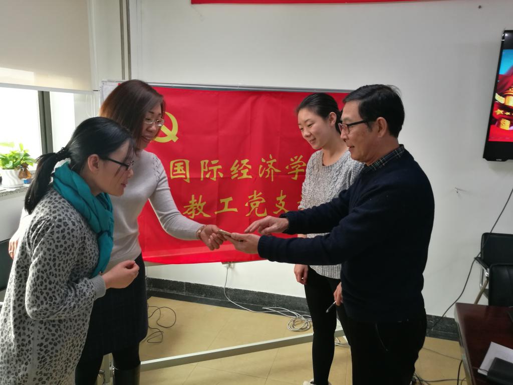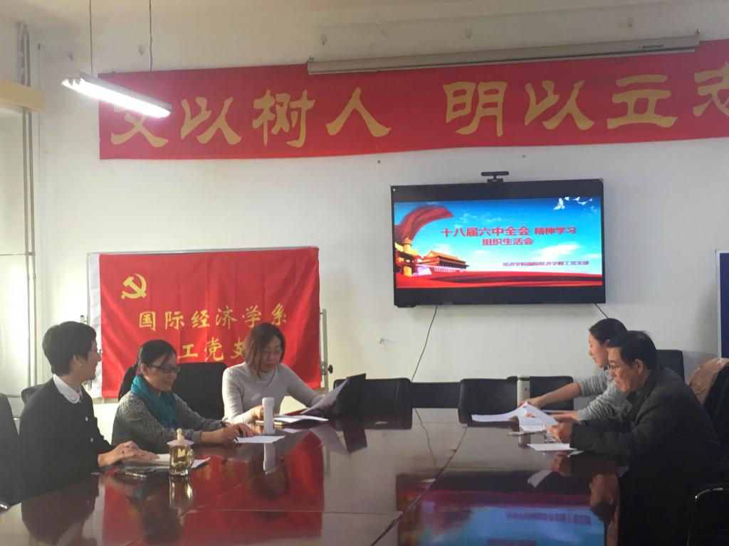 12月21日中午,德赢官网Vwin国际经济学教工党支部4名党员在学院南路校区1305会议室组织十八届六中全会、全国高校思想政治工作会议精神专题学习,学习研讨了习近平总书记《把思想政治工作贯穿教育教学全过程》的重要讲话。专题学习由党支部副书记赵若思同志主持,德赢官网Vwin党委书记雷洪峰列席会议。