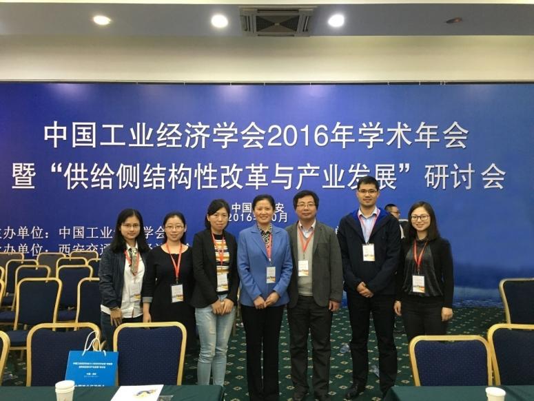 2016年10月15-16日,由中国工业经济学会主办、西安交通大学经济与金融学院承办的中国工业经济学会2016年学术年会暨“供给侧结构性改革与产业发展”研讨会在西安隆重召开。来自全国有关高校、科研院所的专家学者及博士研究生等共计280余人参加了此次会议。我校德赢官网Vwin齐兰教授、史宇鹏副教授应邀并率产业经济学专业博士研究生王姗、戚瀚英参加了此次年会,同时德赢官网Vwin往届产业经济学专业毕业的博士李志翠、陈晓雨、赵立昌也参加了此次会议。参会师生向大会提交了《全球价值链下我国产业发展问题探讨》、《产能过剩与企业多维创新能力》、《互联网经济对我国制造业产业组织垂直专业化影响研究》等多篇论文,并入选会议论文集。