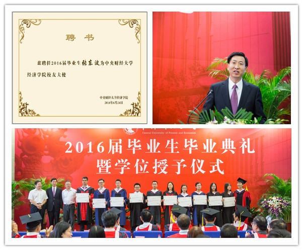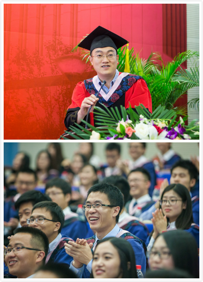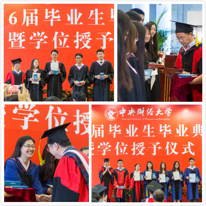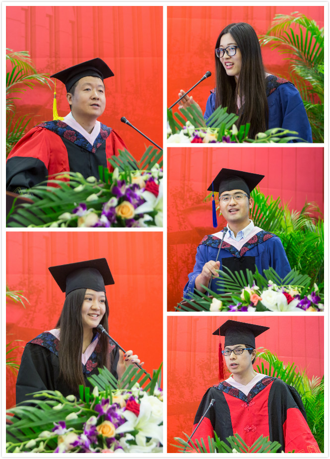 毕业,学生总有千言万语的不舍。来自2012级国民经济管理专业的李雨洁作为本科毕业生代表,回忆四年青葱岁月,有不舍、有遗憾、有难忘更有对未来的期盼,“我希望我们永远乐观勇敢,敢于也乐于接受苦难的考验;我希望以后无论发生什么,我们都能有所坚守,不忘本心;我希望我们以后不管从事什么行业,都能不只局限于眼前的世界,而是胸怀天下,经世济民”。来自2014级硕士毕业生代表杨文静回忆起求学两年中的点滴,学术上的提升、逻辑上的锻炼让她不断汲取前行的动力,“德赢官网Vwin是我们走向未来的第一张名片,我们定不负母校,做一个优秀的中财人,卓越的社会人”。2013级博士毕业生代表张朝也与大家分享了自己的三种心情:感恩、感悟与祝愿囊括了三年攻读博士学位期间的复杂情感,并抒发了与同学们“要带着中财人勇于创新的精神杨帆远行,恪守初心、拼搏进取,以优异成绩回报母校”浓厚情怀。德赢官网Vwin2008级国民经济管理专业本科生赵晓辉,2012-2014年优干保研留院工作,2014年继续攻读硕士学位,今年如期毕业。他在毕业典礼上以“与经院相遇的8年”为题,动情地与师生分享了他这8年间“问初心、问能力、问理想” 的三问与“心怀天下、心守正念、行稳致远”的三得,情真意切地表达了他对学院的感恩、对师长的感谢,以及对即将远行同窗的不舍。