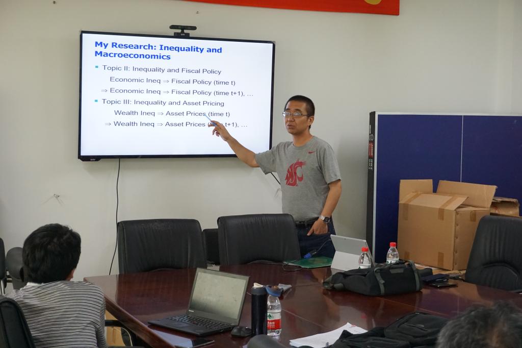 2016年6月22日,美国华盛顿州立大学白金辉教授受邀到德赢官网参加城市贫困研究团队研讨会,会议由陈斌开副院长主持。此次研讨会分两个模块,首先由白金辉教授介绍自己有关贫困问题的研究成果,其次每位参会教师向白教授汇报自己对城市贫困的关注点、研究思路、存在的困难等。