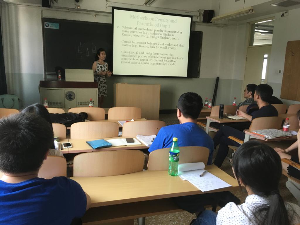 访问期间,Fei教授于5月19日下午在本部主教学楼308教室和德赢官网Vwin的师生举行了研讨会,其主题是Howcompetitive are female professionals? A tale of identity conflict。Fei教授首先对实验经济学的实验设计理论和所需要用到的计量经济学工具进行了简要的介绍,之后报告了其最新文章。该文章主要针对就业市场中女性的竞争力展开,深入的剖析了女性在劳动力市场的表现。研讨会期间,德赢官网Vwin的王海港教授、张舰教授和黄乃静教授等对该主题内容和Fei教授进行了交流和讨论。