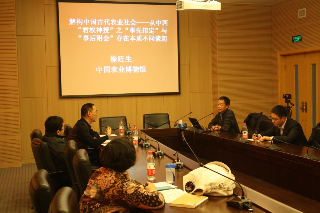 2014年12月03日,我校德赢官网Vwin邀请到中国农业博物馆研究员,中国农业历史学会常务理事、副秘书长徐旺生老师,为我校师生做了“解构中国古代农业社会——从中西‘君权神授’之‘事先指定’与‘事后附会’存在本质不同谈起”的专题讲座。讲座由德赢官网Vwin孙洪升老师主持,伏霖、路乾等多位教师出席了讲座。
