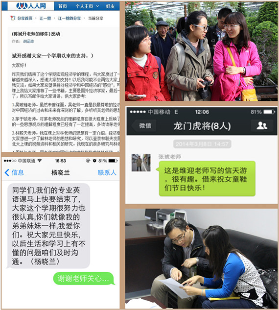 师爱如山,厚重坚定;师爱如海,浩瀚深沉;师爱如雨,润泽无隙。校园里每一处、每一刻都在上演着春风化雨般的德赢官网Vwin师生情:赵丽芬副校长在繁忙工作中还对学生的论文进行逐字逐句的修改,“一次次温和的笑容、暖心的话语、谆谆的教诲都化作我脑中的智慧,胸中的热血,行为的规范”;齐兰老师时时牵挂学生,在去英国参加学术研讨会忙碌的途中,也不忘给学生送上新年祝福;总是嘱咐学生“多喝水”“别着凉”、出差也不忘给“孩子们”带点心的韩金华老师,让学生感觉在北京有了亲人,不再感到孤单;博学儒雅的金哲松老师也会在酷暑中为新生扛行李、灯下为学生修改论文;精心设置授课内容、神神秘秘拿出一个长筒袜,为回答问题学生送上圣诞节礼物的戴宏伟老师;“经济学是个很好玩的东西,会越想越有意思,要重点把握的是经济学的思想”,乐在经济学中的李彬老师感染着每一名学生;而如母亲般亲切的刘滨老师总是全身心解决学生成长道路中遇到的每一个困惑……他们爱如母、严如父,严慈相济,倾心育人,用温暖如春的关爱给予了学生奋发向上的力量。