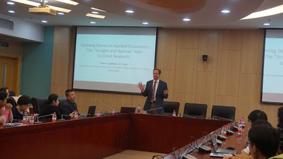 2018年10月12日上午10:00-12:00,加州大学戴维斯分校农业与资源经济系Travis J.Lybbert教授应德赢官网Vwin邀请,在学术会堂604会议室开展了主题为“Spinning Stories in Applied Economics: The “Straight and Narrow”Path to Good Research”的讲座,该讲座是德赢官网Vwin劳动经济学与发展经济学讲座系列2018年秋季学期第一讲。讲座由德赢官网Vwin张舰教授主持,多名德赢官网Vwin教师以及德赢官网Vwin30余名博士和硕士生参加了本次讲座。