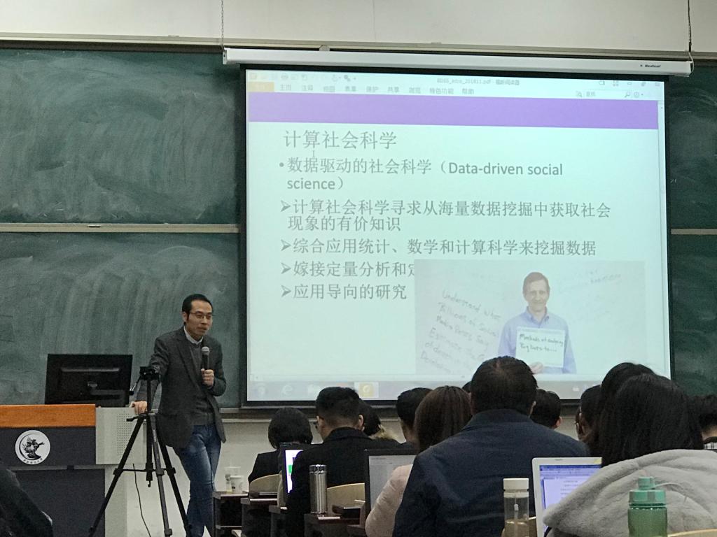 2018年11月9号下午6:30,德赢官网Vwin计算社会科学系列课程正式开始。课程第一讲由清华大学社会科学学院政治学系副教授孟天广老师于主教213主讲。此次课程主题为社科研究中的大数据方法,期间孟天广教授从大数据+社会科学、计算社会科学方法论、研究方法、研究议题以及大数据方法的支持和批评等五个板块出发,为我们系统介绍了当前计算社会科学的发展趋势和前沿研究。