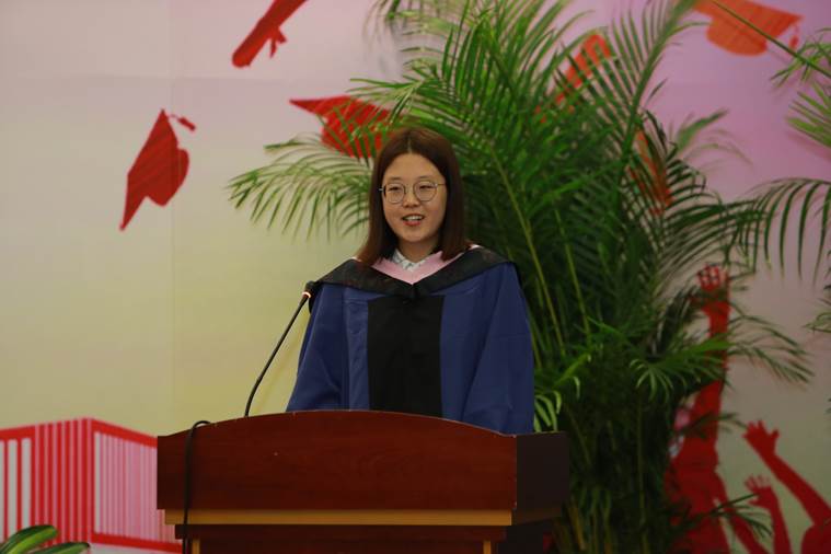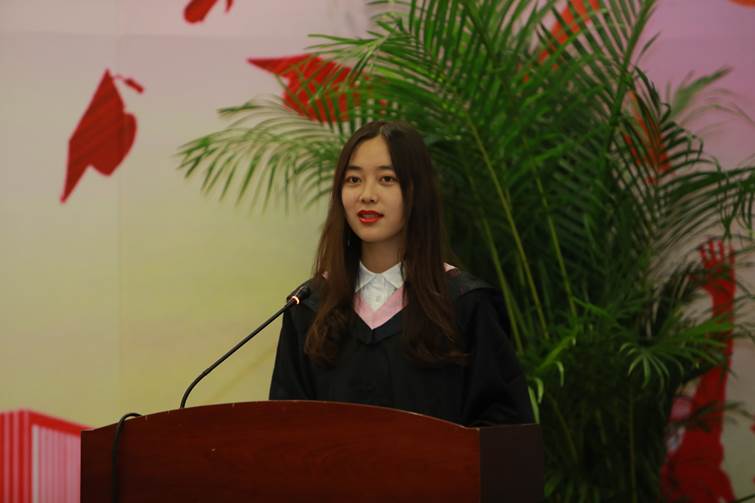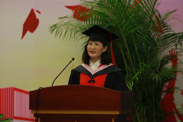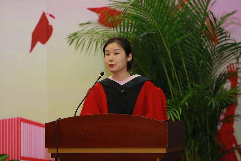 毕业生致辞环节中,陈钇潼同学、马宁宁同学、斯日吉模楞同学分别代表本科生、硕士生、博士生发表了毕业感言。陈钇潼回忆了美好的大学生活,感激老师们的照拂、分享大学生活经验、祝愿同学们继续追求卓越,恪守初心、奋发图强。马宁宁感恩学院在人才培养上付出的心力,感谢教师们的执着和坚守,以及行政老师们的默默付出,感谢家人的支持,“愿各位同学都能在笃行中保持初心,在拼搏中保持敬畏,在奋斗中保持坚韧”,勇于承担起属于自己的社会责任。斯日吉模楞回忆自己的读博时光,是艰辛和升华的四年,校园里每一个角落都记录着中财人勤奋努力的印记,在毕业之际,呼吁毕业生们“无论未来的工作岗位是光鲜亮丽还是朴实平凡,我们都应当刻苦钻研,在各自岗位上奋发图强,为社会贡献我们的微薄之力”,同时感恩母校和老师们,祝福同学们、学院和母校硕果累累,越来越好。