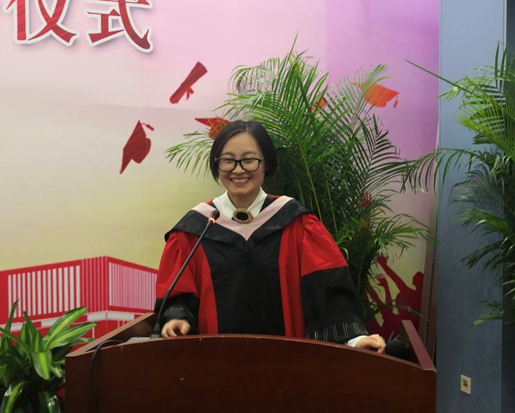 教师代表致辞环节中,赵丽芬教授首先祝贺毕业生们,读书学习是艰辛的过程,同学们经历多年时光后系统掌握了知识的同时拓宽了自己的视野,同时对培养这些学生的家长和老师们致以崇高的敬意;其次感谢老师们对教师职业的执着与热爱、“2+5”、“白+黑”的付出,并且感谢同学们对老师的理解与爱;最后祝福同学们,希望同学们牢记“勤奋、执着、担当、诚信”8个字,“勤恳做事、踏实做人”,处理好“工作与生活、事业与家庭、拼搏与健康”的平衡,祝福毕业生家人们身体健康、生活幸福。青年教师代表徐翔副教授致辞中,以“记忆”为主题寄语毕业生,回忆自己当年的博士毕业典礼,表示十分理解毕业生们对未来的期待、对身份转换的迷惘、对同学情谊的不舍;随后追忆德赢官网Vwin的发展历史,从经济系到德赢官网Vwin发展壮大的心路历程;以及追溯经济学的发展之路,号召毕业生们作为经济学科的传人,在汲取专业知识和老师们的人生经验后,应秉承“经世济民”的精神,为国家和社会做出贡献。