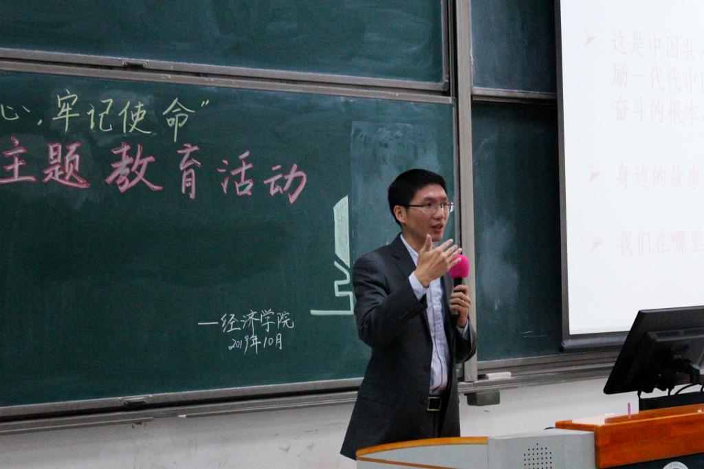 2019年10月22日,德赢官网Vwin“不忘初心、牢记使命”主题教育暨2019级本科新生引航工程--院长、书记第一课于沙河校区主教学楼215教室开讲。德赢官网Vwin院长陈斌开及党委书记郭冬梅作为主讲人出席本次主题教育活动,德赢官网Vwin全体2019级本科新生参加本次活动。