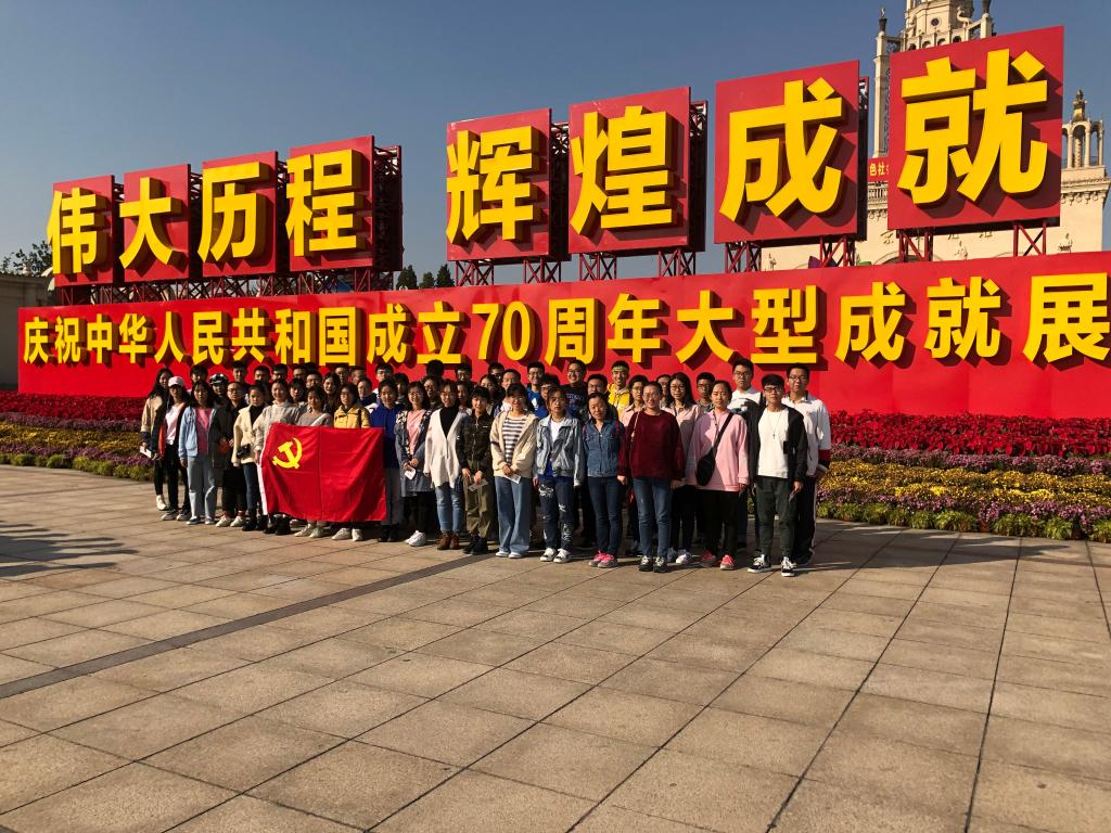 丹枫迎秋,金风玉露。值此新中国成立70周年之际,德赢官网Vwin2019级部分本科生在辅导员任晶的带领下,于2019年10月26日下午14:00前往北京展览馆,参观了“庆祝中华人民共和国成立70周年”大型成就展。