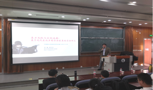 2019年12月11日,复旦大学经济学系李楠教授应德赢官网Vwin德赢官网Vwin邀请,在德赢官网Vwin沙河校区3号楼222教室开展了主题为“暴力风险与合约选择——基于近代东北乡村社会匪患的考察”的讲座,本次讲座由德赢官网Vwin兰日旭教授主持,我校多名教师、博士和硕士研究生参加了讲座。