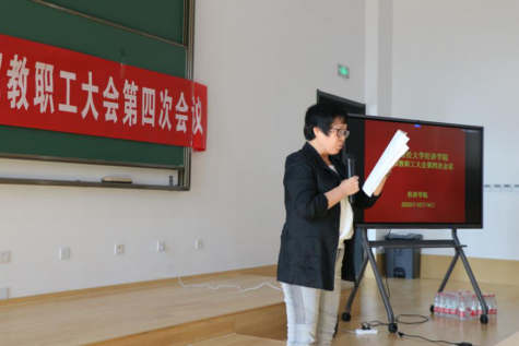 2020年10月14日下午,德赢官网在沙河校区11号学院楼123阶梯教室召开德赢官网Vwin德赢官网Vwin第二届第四次教职工代表大会。学院全体教职工出席了会议,会议由分工会主席苏雪串主持。