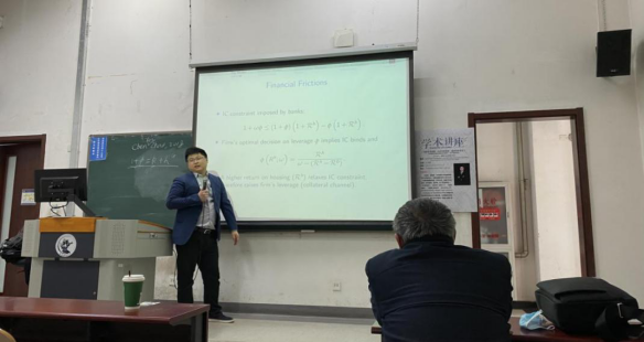 彭老师讲道,在过去十年中,中国经济空前繁荣,伴随着经济增长的放缓和企业金融投资的增加。经济前景的减弱通过刺激企业对金融(尤其是住房)资产的需求而导致住房价格的上涨。在这些事实的驱使下,彭老师基于新凯恩斯模型,对企业在实物投资和金融投资之间的动态组合选择进行建模。住房资产获得正收益,并作为企业对外融资的抵押品。负生产力冲击会降低生产资本的相对收益,通过增加企业的住房需求使得房地产市场繁荣。房价上涨则会对实际投资产生竞争效应:它不仅会因抵押而提高企业的杠杆率,而且会因挤出效应而抑制企业对实物资本的需求。在对中国经济的模型进行校准后表明,前者的效应被后者所主导,这意味着房价的反周期性。在用于稳定经济和住房市场的政策中,我们的反事实分析意味着,针对房价的资本补贴政策比货币政策和去杠杆政策表现更好。