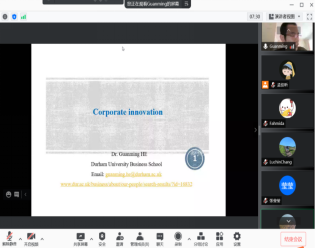 在9月28日的“企业创新(corporate innovation)”专题中,何教授先介绍了企业创新的作用及影响因素,其次分析了“沪港通”制度对企业创新的影响,再次分析了高管营销经验对企业创新的关系,最后对五个专题内容进行了简要总结。