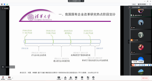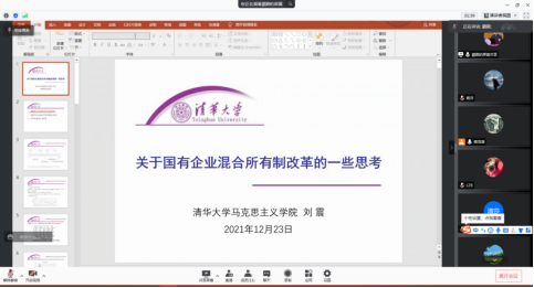 2021年12月23日下午15:00,清华大学马克思主义学院长聘副教授、博士生导师刘震应德赢官网Vwin樊茂清教授邀请,开展主题为“关于国有企业混合所有制改革的一些思考”的讲座,本次讲座通过腾讯会议平台线上举行,刘震老师受到了老师和同学们的热烈欢迎!德赢官网Vwin樊茂清教授主持了本次线上学术交流会。