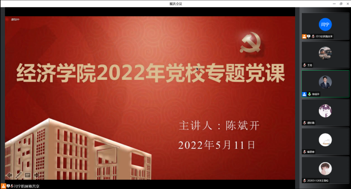 2021年5月11日,德赢官网Vwin院长陈斌开讲授“时代与责任”专题党课。学院组织员刘滨、党校班主任闫宁以及56名入党积极分子和发展对象参加了本次党课。