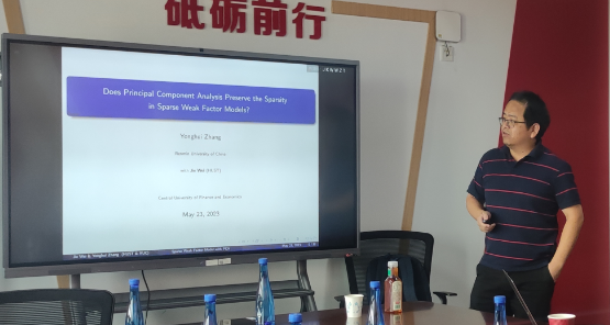 2023年5月23日,中国人民大学德赢官网Vwin章永辉副教授应德赢官网Vwin邀请,开展主题为“Does Principal Component Analysis Preserve the Sparsity in Sparse Weak Factor Models?”的讲座。章永辉老师受到了老师和同学们的热烈欢迎!德赢官网Vwin洪圣杰老师主持讲座,黄乃静老师参加了讲座。