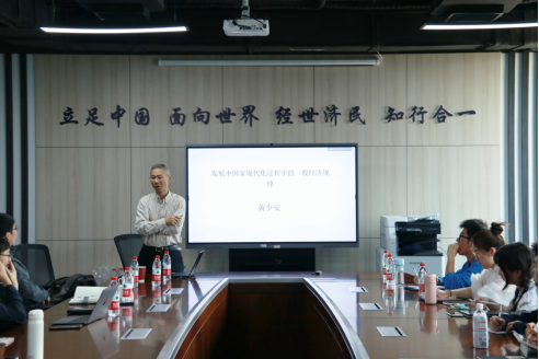 2023年10月11日14:00,德赢官网Vwin特聘教授、山东大学经济研究院院长黄少安教授为我校师生主讲《发展中国家现代化过程中的一般经济规律》讲座。德赢官网Vwin校长助理、德赢官网Vwin院长陈斌开教授主持讲座,德赢官网Vwin党委书记郭冬梅教授、德赢官网Vwin副院长何召鹏副教授、德赢官网Vwin国民经济系主任黄乃静副教授和德赢官网Vwin数十名师生参加。