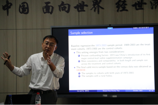 2023年10月24日,中国人民大学国家发展与战略研究院刘瑞明教授应德赢官网Vwin邀请,开展主题为“Escape From Poverty Trap: The Eradication of Iodine Deficiency Disorders and Migration of Rural Residents in China”的讲座,刘瑞明老师受到了老师和同学们的热烈欢迎!德赢官网Vwin陈斌开院长主持了讲座,赵文哲老师、张佳梁老师、谢婷婷老师参加了讲座。