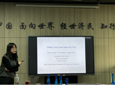 2023年12月6日,上海交通大学安泰经济与管理学院副教授黄雯馨应德赢官网Vwin邀请,于学院11号楼308会议室开展主题为“Phillips Curve across Space and Time”的讲座,黄雯馨老师受到德赢官网Vwin老师和同学们的热烈欢迎!本次讲座由德赢官网Vwin黄乃静副教授主持,香港中文大学经济系副教授史震涛及德赢官网Vwin德赢官网Vwin部分研究生参与此次会议。