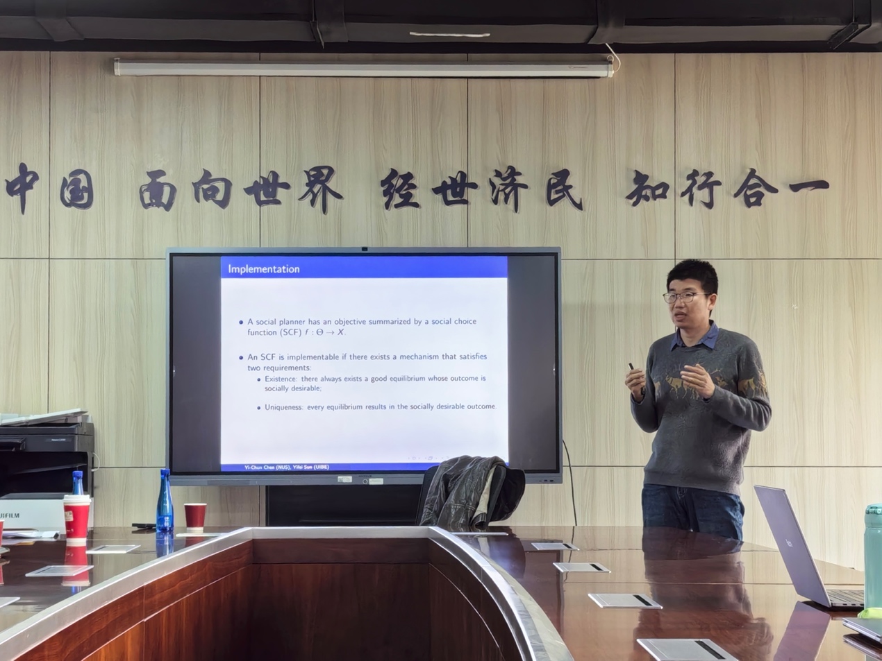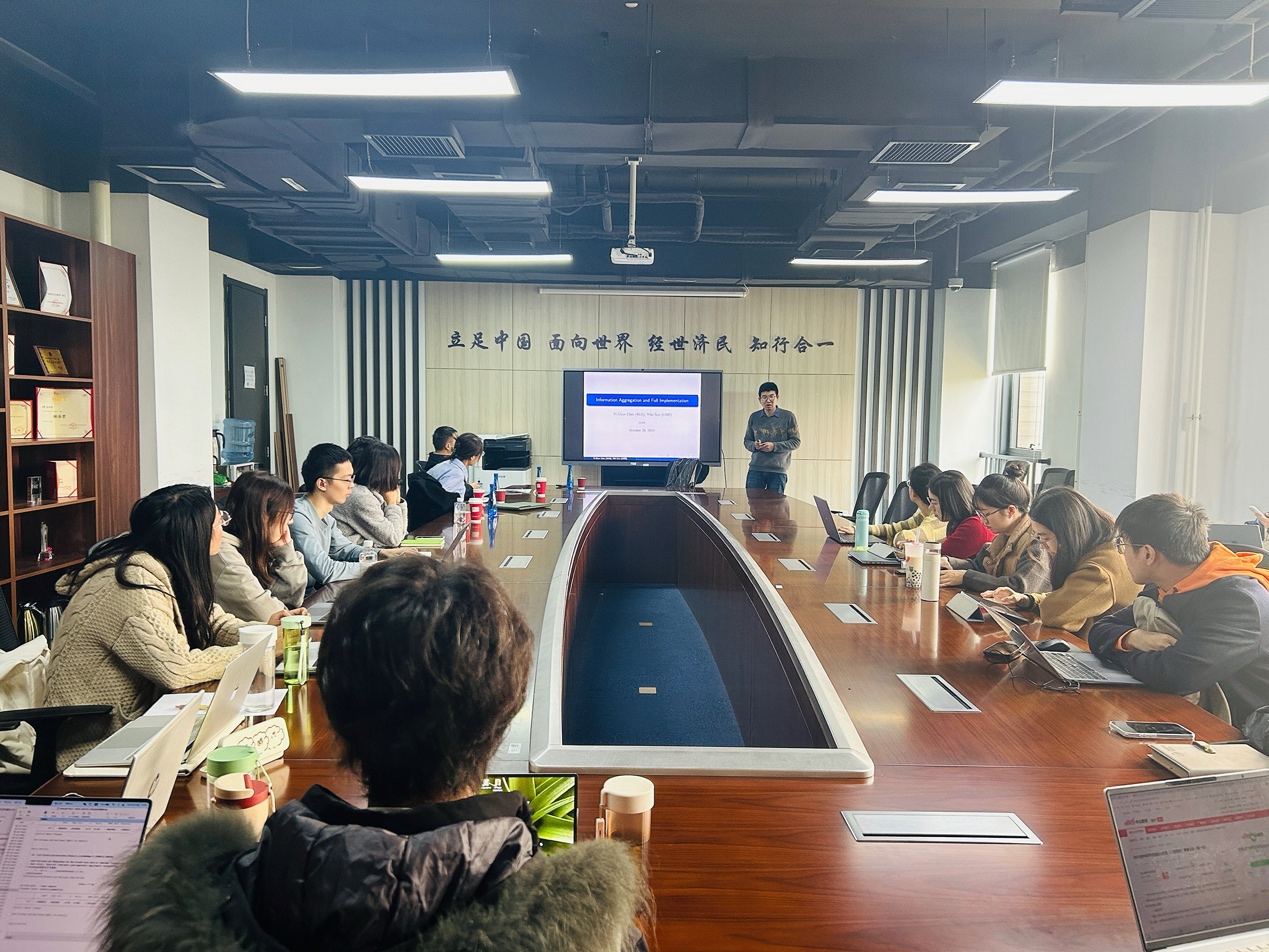 2024年10月25日下午,对外经济贸易大学经济学系孙一飞教授应邀为我校师生主讲“Full Implementation and Information Aggregation”讲座,讲座于学院楼11号楼308会议室举行。德赢官网Vwin德赢官网Vwin龚雅娴副教授主持讲座,张志祥、李东阳等多位校内老师和三十余名同学参加了此次讲座。