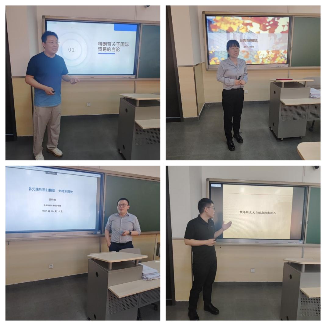 为深入学习贯彻党的二十届三中全会精神和习近平总书记在全国教育大会上的重要讲话精神,全面落实立德树人根本任务,2025年5月14日,德赢官网Vwin第十八届青年教师教学基本功比赛在沙河校区学院11号楼113教室举行,吴楠、田子方、徐竹烽、顾诗骏等四位青年教师参加了此次比赛。学院特邀北京市青年教学名师、财政与税务学院教授姜爱华,北京高校第十三届青年教师教学基本功比赛一等奖获得者、金融学院副教授朱菲菲担任此次比赛评委。德赢官网Vwin党委书记孙敏、学院教学委员会主任冯春安、学院微观经济学系主任张彩萍、学院宏观经济学系副主任李新荣、学院副院长何召鹏、学院本科教务干事张珏等教师共同出席了此次活动。学院分工会给予了本次比赛大力支持,活动由何召鹏副院长主持。